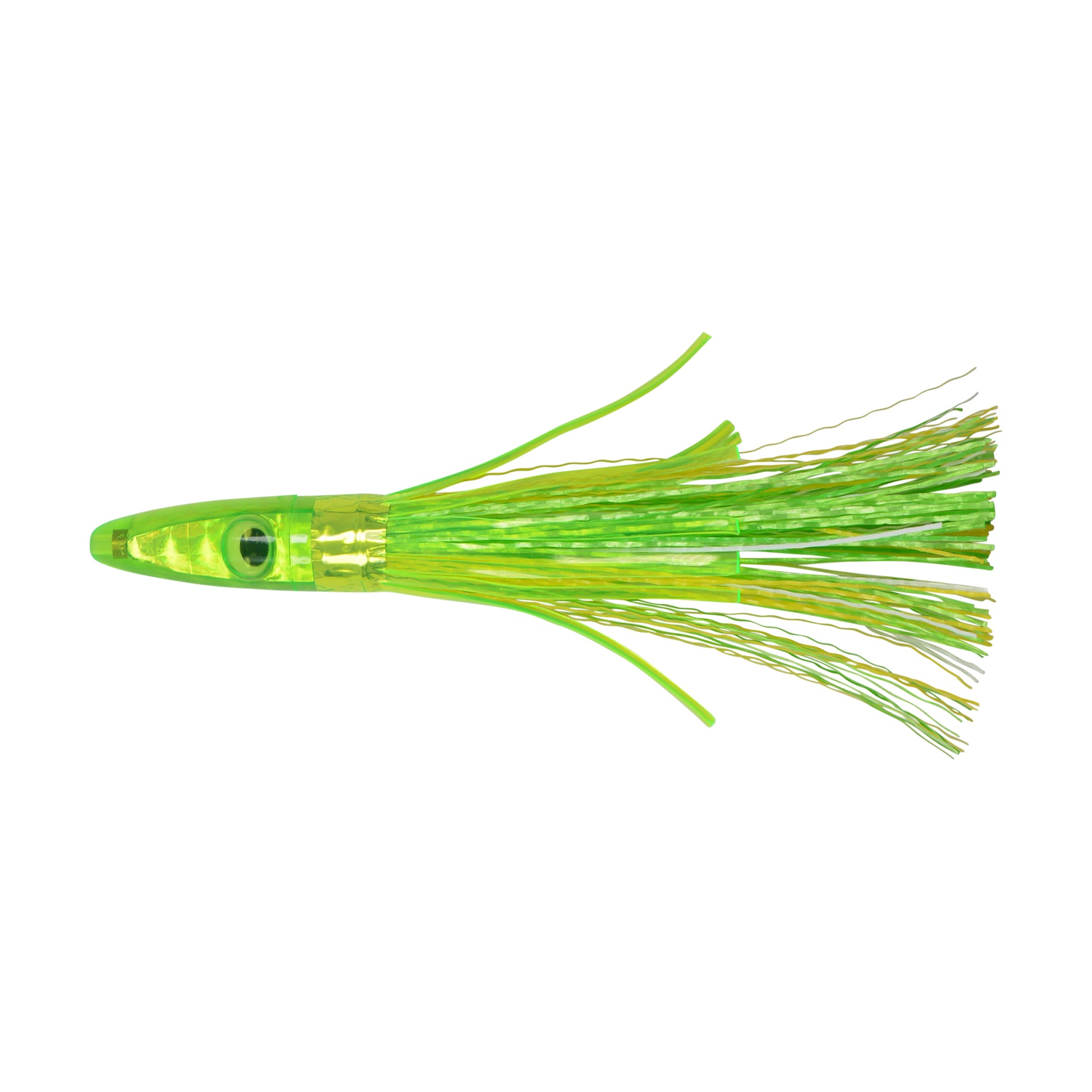 ZUKER'S - The preferred choice among expert sport fishermen worldwide. For many years, Zukers have been and remain highly effective trolling lures for both small and large tuna, albacore, dorado, wahoo, sailfish, marlin, and even sharks. Renowned for their exceptional craftsmanship, Zuker's lures feature a custom design and meticulous attention to detail. Each lure is made with a crystal clear resin head, a sturdy brass tube center, and a lead head insert, all covered with prism paper for added shine. The realistic appearance, complete with two large eyes, imitates the appearance of prey for big game species.